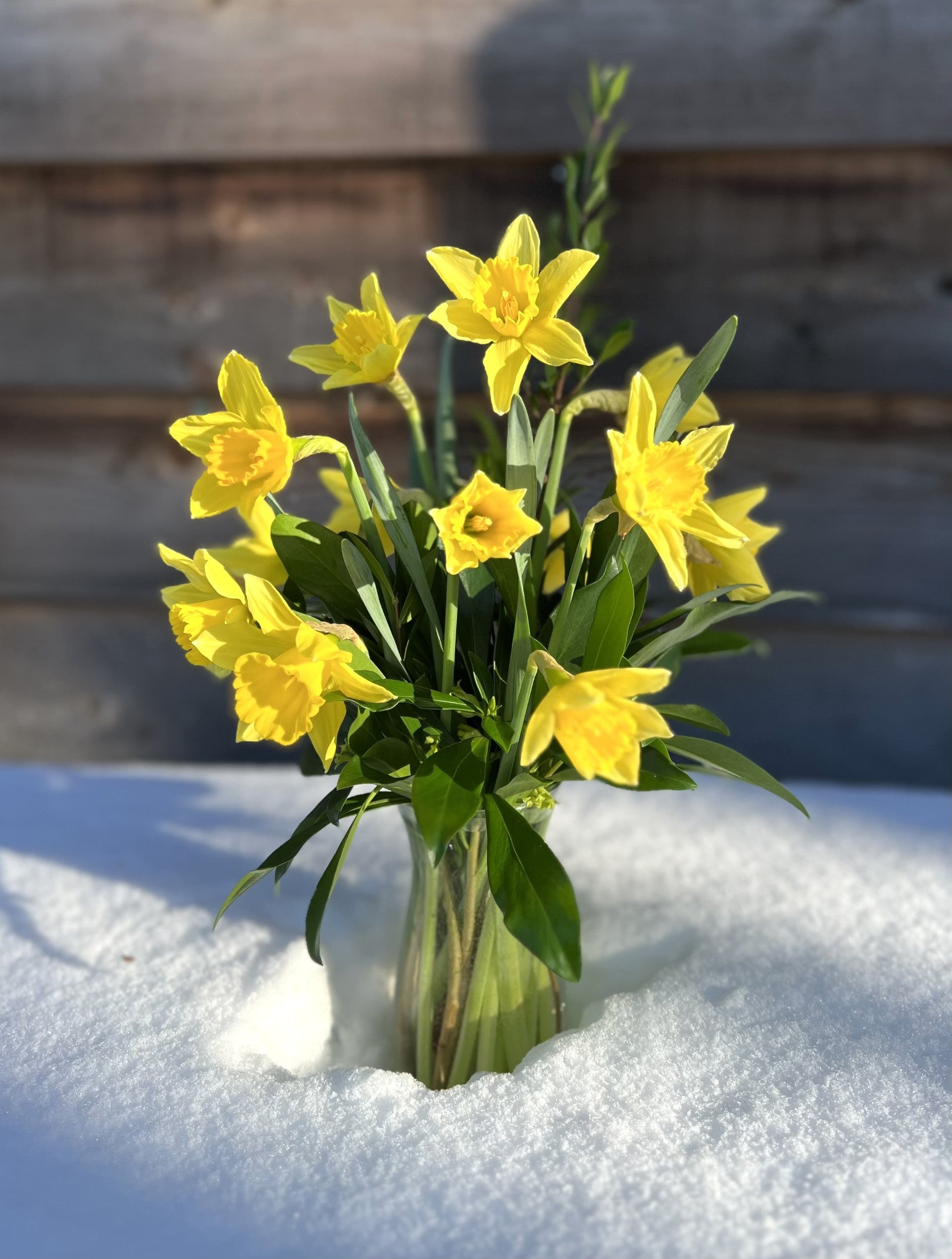 A classic early spring bouquet of 12 bright yellow daffodils, arranged beautifully in a vase with greenery. These flowers are perfect for brightening up any room and adding a touch of cheer to your day. Each daffodil is carefully selected for its vibrant color and long-lasting freshness. Experience the beauty of spring with our Daffodil Dozen arrangement.