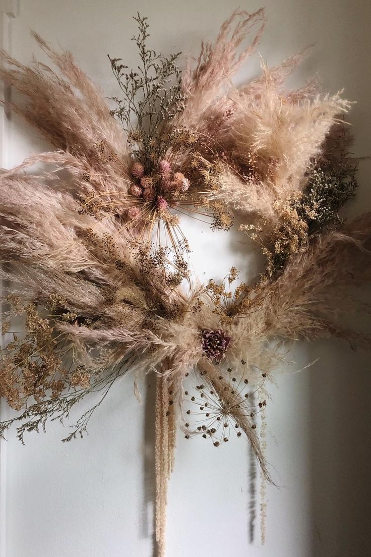 Our elegant, chic & everlasting pampas and dried flower wreath is a stunning combination of natural textures. This handmade lux wreath is a larger statement piece measuring over 28" tip to tip. Naturally dried it is perfect to display year round and adds texture and visual interest to any room, each one is a bit different. We recommend this wreath for indoors only. Pick up is available at our Parksville location.