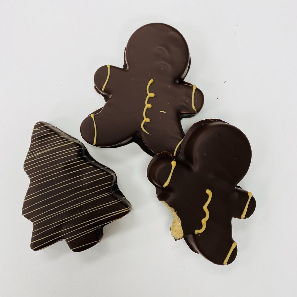 Peanut Butter filled Gingerbread Men: The most amazing peanut butter filling enrobed with 54% ethically sourced dark chocolate in the shape of a gingerbread man.