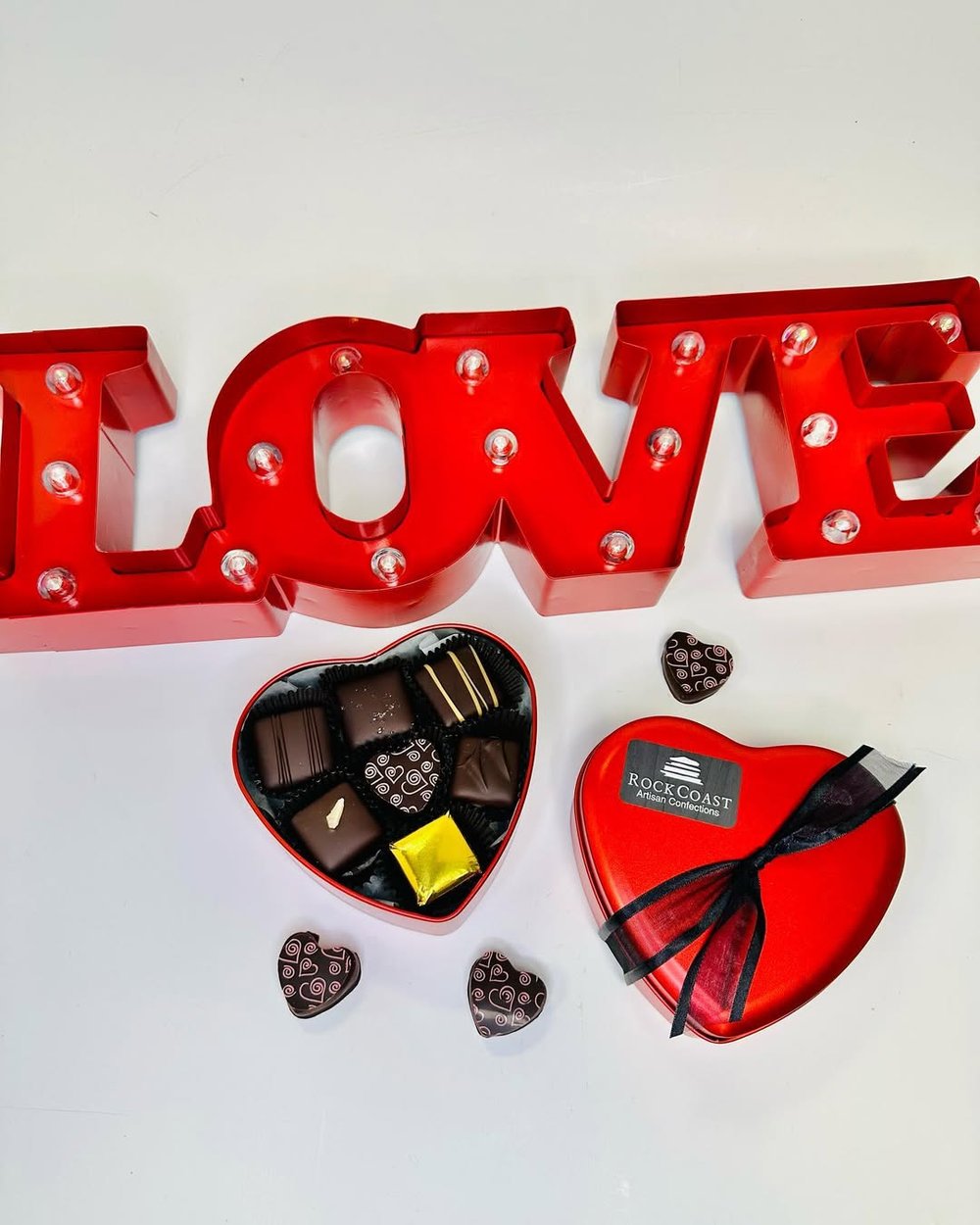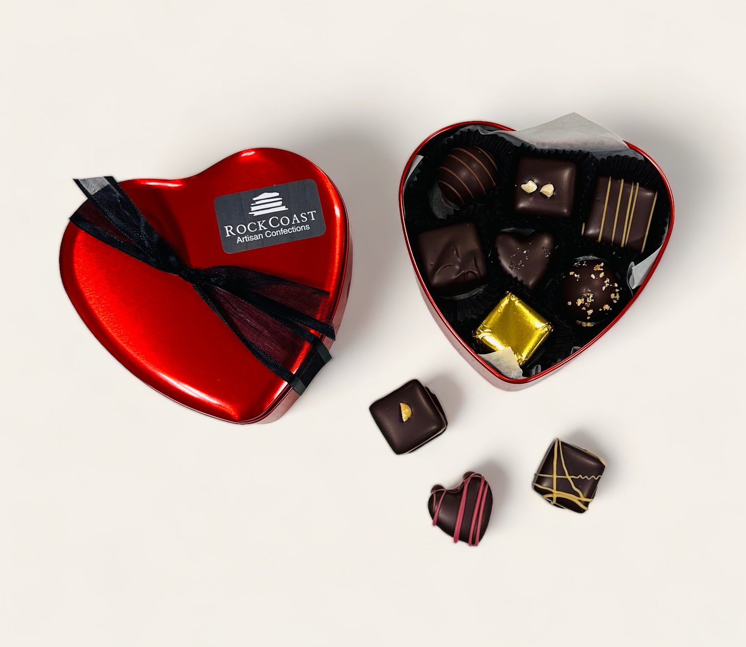 Rock Coast Artisan Confections Heart Tin 14 pcs. Chocolates