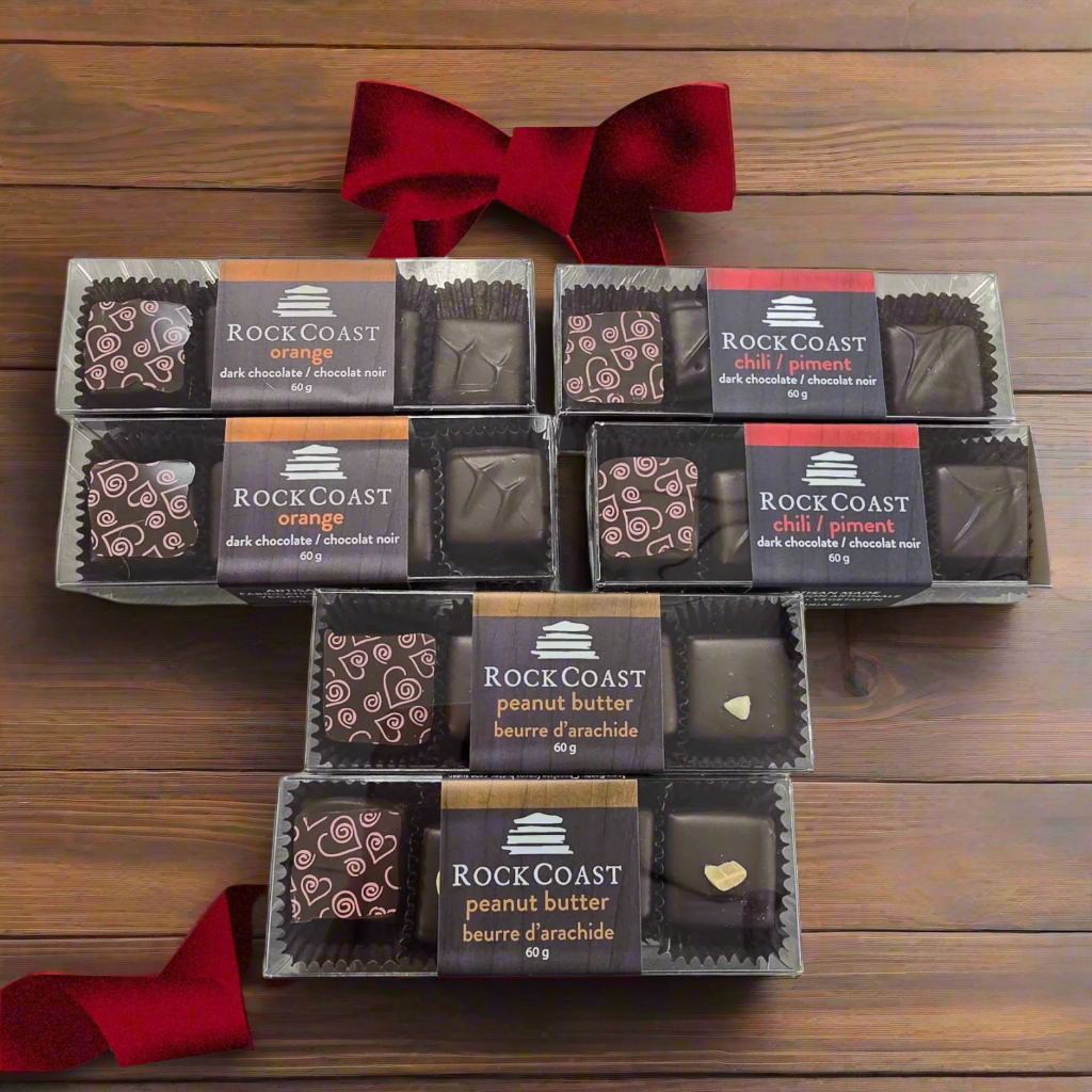 Experience unique flavours with our Rock Coast Artisan Confections Melts. Indulge in a decadent selection of rich chocolate enorobed; Spicy Chili, Creamy Peanut Butter, and Zesty Orange for a delightful taste sensation. Each pack includes 4 pieces, perfect for savoring or sharing. Elevate your taste buds today. One flavour per pack.